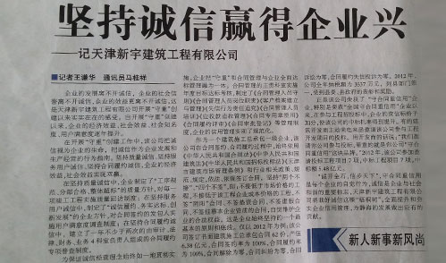 企业的发展离不开诚信,企业的社会信誉离不开诚信,企业的效益更离不开诚信,这是天津新字建筑工程有限公司开展"守重"创建以来实实...